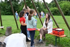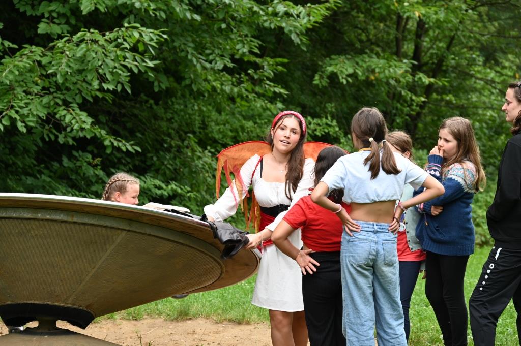 Für unsere Wichtel und Pfadis hieß es im Juli ab ins Nimmerland! Die Reise mit Peter Pan und Tinkerbell wurde von unseren Kompass-Teilnehmer*innen als Teil ihrer Leiter*innenausbildung organisiert und durchgeführt. Dabei überlegten sich unsere angehenden Leiter*innen ein Wochenende voller Abenteuer. Am Freitagabend wurden die Wichtel und Pfadis in Feenvölkchen aufgeteilt und zusammen mit ihrer Oberfee stellten sie sich verschiedenen Aufgaben. Mit einer Hausralley, die so manche Herausforderungen beinhaltete, ging es los. Zur Erholung am Abend fand ein Lagerfeuerabend statt – aufgrund des Wetters mit einem Indoor-Lagerfeuer! Viele Lichterketten, Decken und das gemeinsame Singen sorgten für einen stimmungsvollen Abend. Samstagvormittag wurde dann fleißig gebastelt, gewerkelt und experimentiert. Dabei entstanden Piratenkleider, funkelnde Schatzkisten, geheimnisvolle Feendörfer und vieles mehr. Nach einer längeren Mittagspause stand die größte Herausforderung am Samstagnachmittag an: Bobble’s Brille war weg! Unseren Feenvölkchen war schnell klar, dass Captain Hook sie gestohlen hatte. Mit Ausdauer, Konzentration und Geschick konnten die Feenvölkchen Bobble’s Brille zurückerobern. Gefeiert wurde dann mit Stockbrot am Lagerfeuer an einem warmen Sommerabend. Am Sonntag konnten die Wichtel und Pfadis während einer Schnitzeljagd nochmal ihrer Abenteuerlust nachgehen, bevor dann mit vielen abenteuervollen Erinnerungen schon wieder Abschied vom Nimmerland genommen werden musste.